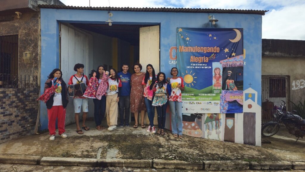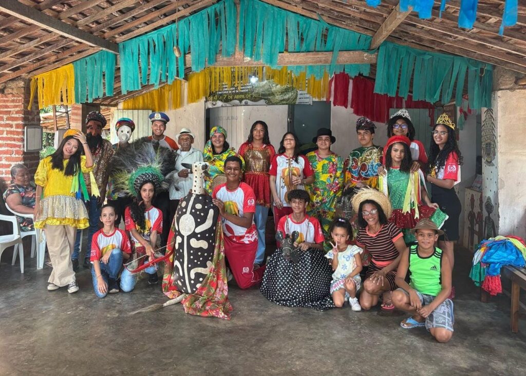 Depois de meses de visitas, escutas e vivências em campo, o grupo Paleta Coletiva, formado por adolescentes do Projeto Educação e Vivências Inclusivas, concluiu a etapa de pesquisa para a produção de sua nova exposição artística. A mostra, que será lançada em agosto durante a Semana do Patrimônio no Museu do Estado de Pernambuco (MEPE), terá como tema central três grandes manifestações culturais de Pernambuco: o Mamulengo, o Maracatu de Baque Solto e o Cavalo Marinho. O processo de construção envolveu uma imersão no território dos saberes e culturas populares. Os jovens artistas visitaram o museu do Mestre Zé de Bibi, patrimônio vivo de Pernambuco e referência do Cavalo Marinho no Brasil; dialogaram com o Maracatu Carneiro Manso, uma das mais tradicionais agremiações de Glória do Goitá; e mergulharam na história do Teatro de Mamulengo na Casa da Cultura Popular – CASACUPO, com Cida Lopes, filha de um dos maiores mamulengueiros do estado, o Mestre Zé Lopes. Os encontros se deram a partir de um processo de escuta, afeto e reconhecimento de identidade. “Conversar com Cida trouxe um novo olhar. A gente só via o mamulengo de forma superficial. Agora tenho mais interesse em conhecer ainda mais o mamulengo, o cavalo marinho e o maracatu. Descobri que não é só uma brincadeira”, contou a jovem Diná Ketula após a visita à CASACUPO, a última das visitas da pesquisa feita pelo grupo. No Carneiro Manso, os relatos de resistência, transformação e ancestralidade também tocaram os artistas. “Toda essa vivência fortaleceu o entendimento das narrativas que eles estão criando agora nas telas. São discursos que partem de dentro do território, que falam da gente”, explicou Wemison Araújo, educador e curador da exposição. Já no Sítio Malícia, com Mestre Zé de Bibi e sua filha Michele, os adolescentes entenderam o quanto a oralidade, o improviso e o pertencimento são fundamentais para a continuidade do Cavalo Marinho. “A partir das histórias a gente pôde aprender muito. Gostaria de continuar participando dessas vivências”, comentou Lohana Farias, também integrante do paleta. A nova exposição, intitulada “O Riso, o Baque e o Galope”, trará 18 telas criadas a partir dessas experiências. As obras refletem os diálogos entre tradição e juventude, memória e criação, território e futuro. A expectativa é que a mostra ajude a desmistificar preconceitos, valorizar os saberes populares e fortalecer o sentimento de pertencimento das novas gerações com a cultura de Glória do Goitá. Como reforça Wemison: “Não queremos apenas colorir paredes. Queremos que cada obra carregue o peso, a beleza e a verdade desses encontros.” A iniciativa, realizada pela Giral, conta com o apoio do Programa Amigo de Valor, do Santander.