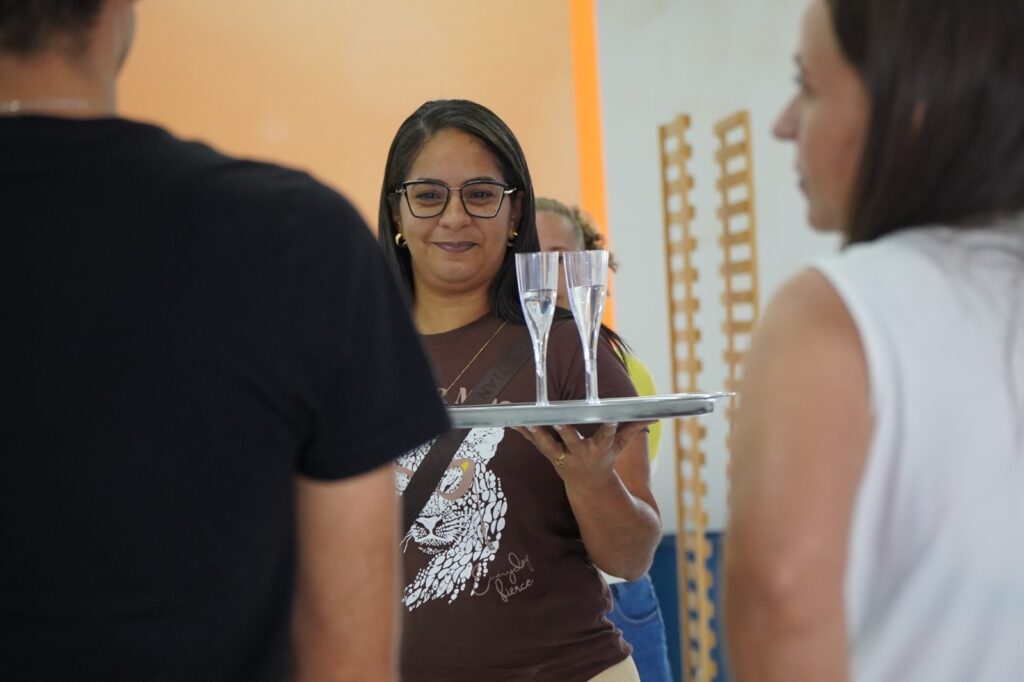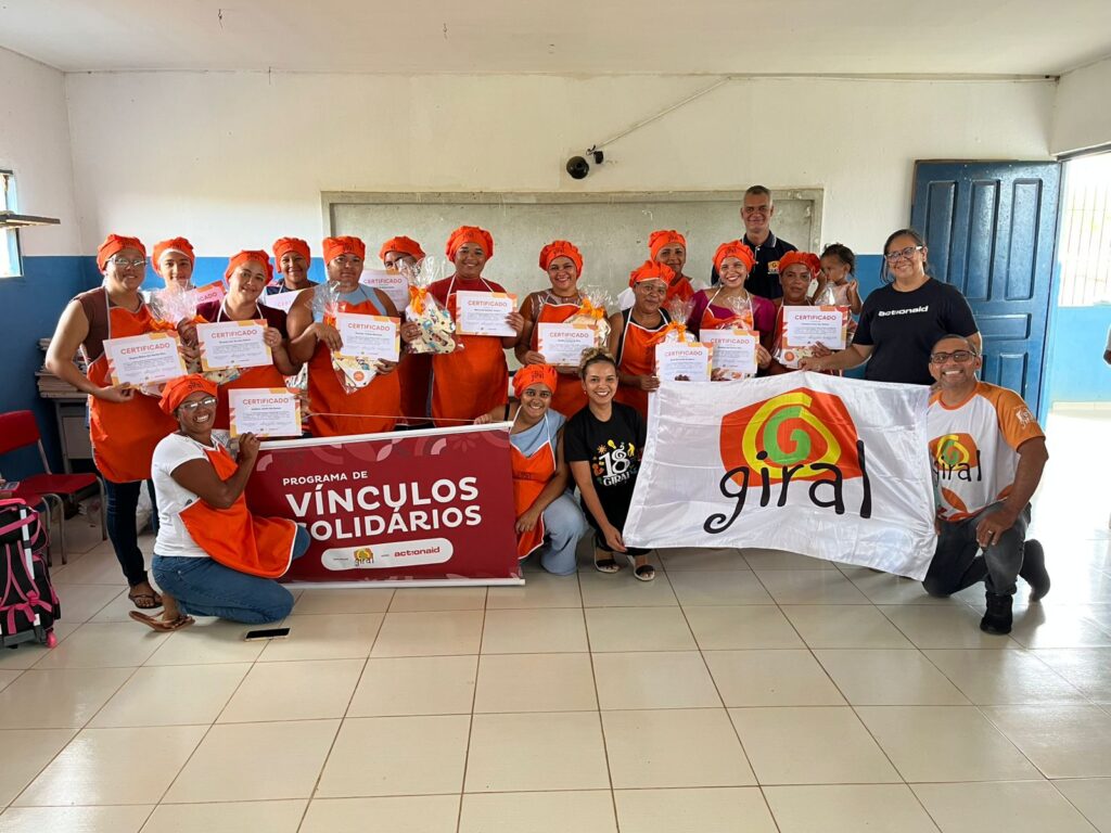 Na Escola Municipal Aurino Correia de Lima, na comunidade rural de Taboquinhas, as manhãs tinham uma rotina comum: devido à distância, muitas mães esperavam os filhos terminarem as aulas para levá-los para casa. No entanto, através do Programa de Vínculos Solidários, essa espera foi transformada em motor de mudança, por meio de formações voltadas ao empreendedorismo. O projeto, que acontece em parceria com a ActionAid, promove atividades formativas e culturais com foco na justiça econômica e social. Na comunidade de Taboquinhas, a iniciativa identificou a demanda por crescimento e oportunidades. Maria Cristina , coordenadora do projeto, testemunhou essa vontade: “Um grupo de mulheres passava suas manhãs esperando seus filhos e decidiu não mais aguardar, mas agir.” Em uma roda de conversa, elas compartilharam sonhos e aspirações, e o desejo de transformar a espera em ação resultou no workshop inicial “Uma Empreendedora em Cada Lar”. A partir dessa semente, as mulheres definiram o próximo passo: aprimorar habilidades de culinária para gerar renda. O Programa de Vínculos Solidários estruturou uma oficina focada em Bolo de Pote e Salgados, incluindo módulos essenciais sobre precificação e fotografia de produtos para comercialização. “Isto nos fez refletir da importância na ‘escuta ativa’ e no respeito necessário antes de pensar em qualquer que seja a Oficina,” explica Cristina. O impacto da iniciativa valorizou não apenas o saber empreendedor, mas também o conhecimento local. Ao procurar uma instrutora, a equipe do projeto descobriu que a própria merendeira da escola, Cláudia Cristina, tinha a expertise necessária. Cláudia relata que se sentiu profundamente honrada em ministrar a oficina: “Eu amo a cozinha e poder ensinar para essas mulheres foi muito especial e importante para mim.” As oficinas de culinária foram um sucesso. Sandrely dos Santos, uma das participantes, já demonstrava o resultado imediato: ela revelou ter virado a noite anterior à oficina praticando a produção de bolos e salgados para comercializar, entusiasmada com a possibilidade de se tornar uma nova empreendedora. “Eu quero usar esses conhecimentos pra gerar renda pra mim. No fim de semana já vou levar alguns bolos de pote pra vender pra família do meu marido”, disse a participante. O compromisso da Giral em ouvir e atender às demandas comunidades onde atua, reflete uma visão de desenvolvimento inclusivo e respeitoso. As oficinas, além de um espaço de aprendizado e geração de renda, fortalecem a autoestima e a autonomia. “Espero que essa experiência inspire novas oficinas e projetos, ampliando as oportunidades para que mais mulheres possam se desenvolver e se empoderar,” reforça a coordenadora Maria Cristina. O Programa de Vínculos Solidários é uma iniciativa da Giral com apoio da ActionAid Brasil.