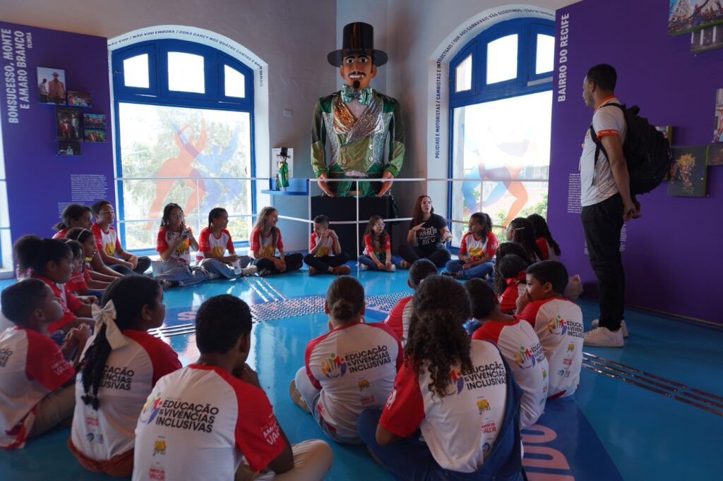 Os intercâmbios promovidos pelo projeto Educação e Vivências Inclusivas têm aproximado o conteúdo das oficinas do cotidiano e da história viva do território. São vivências que conectam arte, cultura e identidade, despertando novas possibilidades de futuro para crianças e adolescentes de Glória do Goitá. Recentemente, as turmas das oficinas de Teatro e Dança participaram de visitas ao Paço do Frevo e ao Museu Cais do Sertão, em experiências que dialogam com os conteúdos trabalhados em sala e expandem o repertório cultural dos participantes. “A ideia foi oportunizar acesso à cultura e ao lazer, principalmente agora nas férias, quando muitos não teriam como vivenciar isso por conta própria”, explica Renata Uchoa, coordenadora do projeto. Para os grupos de teatro e dança, a visita ao Paço do Frevo foi pensada como uma extensão das atividades que já vinham sendo desenvolvidas nas oficinas, como as aulas sobre o frevo, ministradas pelo arte-educador Marcelo Henrique. “A gente tentou revisitar esse lugar do frevo para entender sua importância, o que ele diz sobre identidade, cultura, memória — e também fazer esse recorte da identidade negra, que é algo que vamos abordar mais profundamente daqui pra frente.” O impacto da visita foi imediato entre os participantes. Lidenberg Filho, aluno das oficinas e dançarino dedicado, ficou emocionado com a experiência. “Fiquei muito feliz por saber ainda mais do frevo, da importância dele, das várias culturas envolvidas, das músicas e de onde tudo surgiu. Conheci mais profundamente coisas que a gente não sabia.” No Museu Cais do Sertão, a turma mergulhou em elementos da cultura nordestina: a oralidade, as tradições populares, a vida no sertão. “Trabalhamos esses espaços como continuidade do que é vivido nas oficinas, para trazer referências e inspirações”, reforça Renata. “Tudo que temos no Nordeste constitui a gente enquanto pessoa, enquanto cultura. E essas vivências fora da sala dão sentido à dança, à arte, à história que estamos construindo com eles.” Stéphane Thayane, participante da oficina de dança, também se encantou com o que viu. “Achei muito interessante a exposição, principalmente a parte da casa de taipa. Sempre gostei desse tipo de coisa”, comentou, referindo-se à ambientação do Cais do Sertão. Os intercâmbios não param por aí. Na próxima semana, será a vez das turmas da Oficina do Saber visitarem o Instituto Ricardo Brennand, onde participarão de uma visita mediada à exposição do artista Vik Muniz e poderão circular livremente pelo castelo que abriga o museu. “A quantidade de objetos e obras que vão encontrar ali com certeza vai provocar uma memória forte neles”, antecipa Renata. “Essas experiências ajudam a entender como o território e a cultura moldam as nossas histórias e subjetividades. E depois vamos usar isso nas aulas de leitura e escrita.” Segundo Renata, os intercâmbios não se encerram nas visitas. Eles inauguram uma nova etapa de aprofundamento nos temas vivenciados, com o apoio do Museu do Homem do Nordeste, que visitará a Giral para atividades formativas com foco na preservação do patrimônio imaterial. “Vamos tratar de referências da cultura local, de povos indígenas, de tudo que forma esse nosso tecido cultural”, explica a coordenadora. “Acredito que esse tipo de vivência tem um impacto subjetivo e intelectual muito profundo. Fica mais fácil trabalhar certos conteúdos quando a criança vive aquilo — quando a dança, por exemplo, ganha um sentido histórico, de resistência, de identidade.” O projeto Educação e Vivências Inclusivas é realizado pela Giral, com apoio do Programa Amigo de Valor, do Santander. A iniciativa oferece oficinas no contraturno escolar, atendimento multiprofissional e atividades que promovem o desenvolvimento integral de crianças e adolescentes, com foco na formação cidadã, cultural e política, especialmente em contextos de vulnerabilidade social.