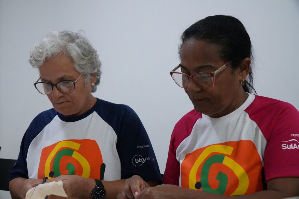 Um espelhinho passeia entre mãos que carregam as marcas do tempo. E quando os olhos se encontram com o reflexo, ouvimos diferentes histórias de vida. Depois, as mesmas mãos que seguram o espelho, costuram bonecas que refletem os traços e as vivências dessas personagens tão importantes: as participantes do Projeto Sonhos Não Envelhecem. A oficina de artesanato, conduzida pela artesã e educadora social Claudiane Oliveira, tem proposto uma experiência sensível de reconhecimento, pertencimento e valorização da trajetória de cada participante. Batizada de “Oficina Identidade”, a proposta tem como objetivo a confecção de uma boneca com características físicas e culturais das próprias mulheres — tom de pele, textura do cabelo, modo de se vestir. Mas, antes da costura final, o processo revela um universo potente de memórias, afetos e descobertas sobre si e sobre as outras, fortalecendo vínculos e reafirmando identidades. “A oficina é um espaço para elas se reconhecerem. Muitas são mulheres pretas, agricultoras, moradoras da zona rural. Aqui, elas têm a oportunidade de refletir sobre quem são, do que gostam, como se divertem, como se vestem”, explica Claudiane. A costura, nesse contexto, funciona como um pretexto para conversas profundas e trocas afetivas. A educadora reforça o caráter coletivo da experiência. “É uma troca. Elas falam de suas histórias, escutam as das colegas. Muitas nunca tinham parado pra pensar sobre si com esse cuidado: se reconhecer no próprio corpo, na sua cor, no seu cabelo. E tudo isso vai virar uma boneca, que é a representação de tudo isso que elas são.” A proposta tem gerado impactos positivos. “Hoje foi muito especial”, contou Maria José dos Santos Andrade, de 64 anos. “Aprendi coisas que eu não sabia. Conversando, a gente vai se dedicando e aprendendo mais ainda. Me conhecer foi maravilhoso. Minha cor, meu cabelo, meu jeito — tudo é perfeito, tudo é joia.” Para Ana Maria, de 66 anos, a oficina foi uma oportunidade de revelar algo que vai além do nome ou da aparência. “As pessoas me conheciam como ‘Aninha, filha de seu Perrito’, mas não sabiam do meu pensar, da minha história. Agora, me conheceram de verdade. E também escutar as histórias das outras foi muito bom — teve muita infância sofrida ali. A gente passou a entender umas às outras.” Focado em pessoas idosas em situação de vulnerabilidade, o Projeto Sonhos Não Envelhecem promove saúde física e mental por meio de oficinas, rodas terapêuticas e atividades de lazer e aprendizagem. Incentivando o envelhecimento ativo e o fortalecimento de vínculos afetivos, o projeto valoriza o protagonismo, a convivência e os sonhos em todas as fases da vida. Para além de uma atividade manual a oficina expressa o compromisso da Giral com uma educação sensível, intergeracional e transformadora. Em cada boneca costurada há memória, afeto e afirmação. O Projeto Sonhos Não Envelhecem é uma iniciativa da Giral – Desenvolvimento Humano e Local, com patrocínio da SulAmérica, Instituto Ultra, Alura e Cia Muller.