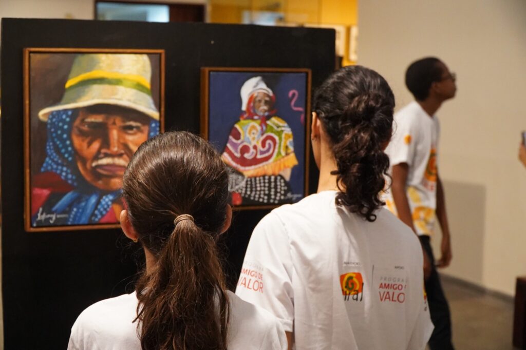 De 19 a 24 de agosto, o Museu do Estado de Pernambuco abriu suas portas para a exposição “O riso, o baque e o galope”, assinada pelo Paleta Coletiva — grupo de jovens artistas formados pela Giral. São 17 obras que mergulham na cultura popular da Zona da Mata Norte, celebrando mestres e brincantes do mamulengo, do maracatu rural e do cavalo marinho. Nos quadros, a força dos folguedos e de seus brincantes ganha cor e movimento. Entre as homenagens, estão figuras como os mestres Zé Lopes, Zé de Vina e Zé de Bibi, além dos grupos Carneiro Manso, Estrela da Tarde e Teatro do Riso, reafirmando a força da memória e cultura do nosso povo e o papel da arte como resistência. Para o educador e curador da mostra, Wemisson Araújo, o momento evidencia como o trabalho da Giral vem ganhando respeito e se consolidando no meio das artes. “Foi a culminância de um trabalho construído ao longo do tempo pelos artistas. Devolver esse resultado à sociedade em um espaço como o Museu do Estado é extremamente significativo. Representa a cultura agrária, de pessoas simples, que partem da periferia do interior do Estado e conquistam um lugar de destaque no coração da capital pernambucana”, refletiu. “Não imaginava que seria tão enriquecedor”, aponta Diná Ketula, uma das jovens artistas do grupo. “A experiência foi transformadora! Desde conhecer a cultura e a vida de quem faz parte dela até a hora de pintar nosso entendimento daquela realidade”. Ela destaca que cada obra carrega uma história única e relata o sentimento de gratidão após a abertura da exposição. “Gratidão ao Museu do Estado, ao Giral, ao professor Wemisson que acreditou e nos guiou, e claro, ao Paleta Coletiva.” O Paleta Coletiva nasceu do projeto Educação e Vivências Inclusivas, da Giral, como espaço para que adolescentes explorem a arte como forma de expressão, pesquisa e registro do cotidiano da Zona da Mata Norte. Em seus pincéis, telas e paletas, os jovens carregam o compromisso de salvaguardar memórias, valorizar tradições e afirmar identidades. Realizada pela Giral, a exposição “O riso, o baque e o galope” conta com o apoio do Programa Amigo de Valor, do Santander, e reafirma o poder da arte de criar pontes entre passado e presente, território e mundo, aproximando outras gerações da nossa tão rica cultura popular.