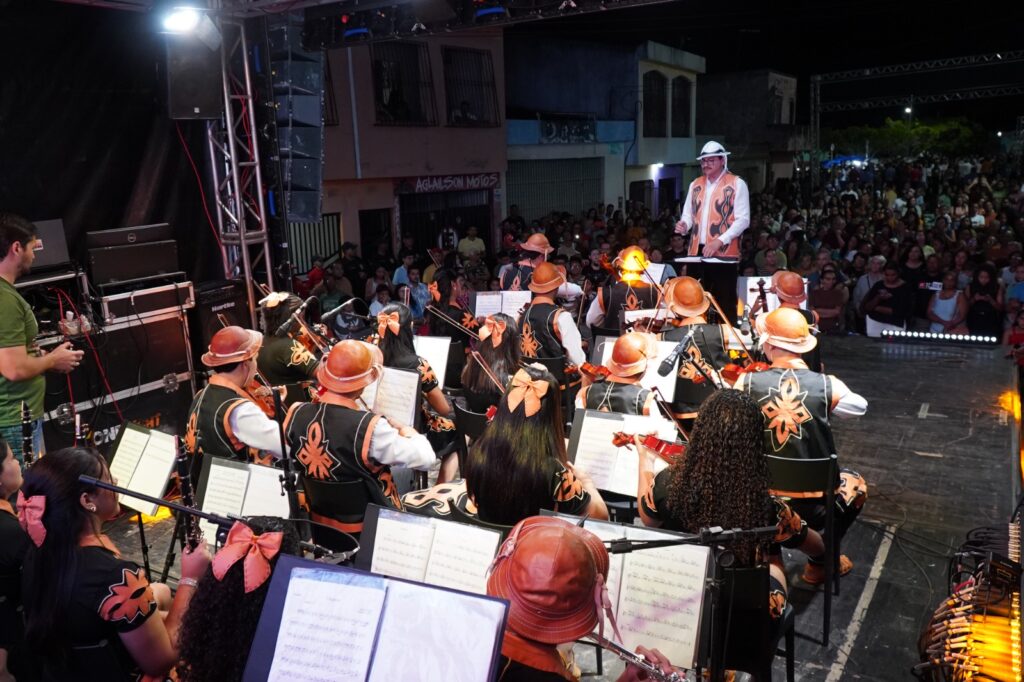 No dia 17 de agosto, a Orquestra Meninas e Meninos da Alegria abriu sua segunda turnê durante a Festa de Nossa Senhora da Glória, padroeira da cidade. O espetáculo “Tocando o Nordeste” reuniu 24 jovens músicos, sob a regência dos maestros Leonardo Oliveira e Jonatas Araújo. O repertório une música erudita e popular. Vivaldi e Mozart apareceram lado a lado com Luiz Gonzaga, Alceu Valença, Onildo Almeida e Zé Ramalho. As peças receberam arranjos dos maestros e dos próprios integrantes. Clássicos como Asa Branca, Xote das Meninas e Feira de Caruaru animaram o público, junto a frevos e baiões. Essa é a segunda turnê da Orquestra. Em 2024, o grupo apresentou “Aruana: Uma Vida em Canção” em dez cidades, incluindo Recife e Olinda. Agora, o foco é circular pelo interior, com a proposta de interiorizar ações culturais. Estão previstas apresentações em Feira Nova, Lagoa de Itaenga e Pombos. No dia anterior à estreia, o auditório da Giral recebeu um ensaio aberto ao público. A Orquestra é fruto do projeto Meninas e Meninos da Alegria em Movimento, realizado pela Giral. O projeto oferece oficinas de música e balé, trabalhando autoestima, disciplina e habilidades sociais com crianças e adolescentes. Além dos concertos, os jovens realizam aulas-concerto em escolas e comunidades. O espetáculo tem direção geral de Everaldo Costa e a poesia de Sérgio Ricardo. Já os figurinos foram criados pelo arte e Educador Marcello Henrique e confeccionados pela Escola de Moda da Giral. Com a proposta de fortalecer o desenvolvimento de crianças e adolescentes através da música, o projeto Meninas e Meninos da Alegria tem como resultados concretos, além de lindos espetáculos, a formação de cidadãos conscientes, criativos e protagonistas de suas próprias histórias. A turnê é uma realização da Giral com patrocínio da BB Seguros.v