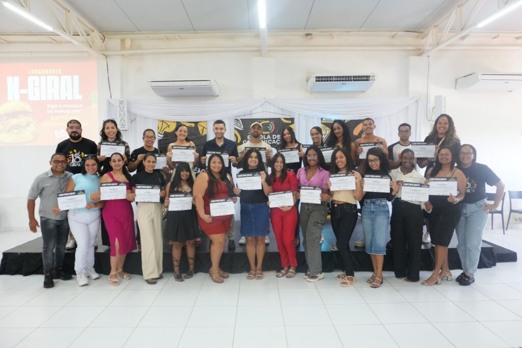 O auditório da Giral se encheu de emoção nesta segunda-feira (06) com a formatura da primeira turma do Projeto Escola de Comunicação. O projeto, que forma jovens e adultos para atuarem com protagonismo nas áreas da comunicação e das tecnologias, encerrou um ciclo de aprendizados e reuniu estudantes, educadores e parceiros em uma manhã de celebração. O evento começou com as boas-vindas da equipe e a composição da mesa, seguida da palestra sobre Marketing na Era das Inteligências Artificiais, ministrada pelo gestor e mídia digital Douglas Lima. Durante a cerimônia, Everaldo Costa, fundador da Giral, usou o simbolismo da fotografia para inspirar os formandos. “Às vezes, precisamos ajustar a lente para que a imagem saia boa. E a vida é assim também. Às vezes está tudo desfocado, e precisamos limpar o olhar — do preconceito, da discriminação, do desânimo — pra enxergar nossos sonhos”, disse. Ele reforçou que o que tem valor exige “tempo, persistência e estudo,” e não a urgência e pressa que muitas vezes o mundo digital nos impõe. Entre os formandos, os depoimentos revelaram que o curso ultrapassou a formação técnica, sendo um vetor de desenvolvimento pessoal. Lindalva Pereira, que antes tinha medo de falar em público, relatou sua transformação. “Eu sempre fui aquela pessoa que baixava a cabeça pra não precisar falar. Mas a Escola de Comunicação me transformou. Hoje eu estou aqui, falando — e isso é uma vitória. As aulas de oratória foram fundamentais. Eu queria que todos tivessem a mesma oportunidade.” Jamilly Santos, outra participante da turma, destacou o valor da comunicação para além da profissão. “Desde a primeira aula, aprendi coisas que vou levar para a vida. Entendi que a comunicação é essencial no dia a dia, em qualquer área. A Giral me abriu um novo caminho e eu só tenho a agradecer por essa oportunidade.” Já Leonildo Moura, presidente da Giral, ressaltou o protagonismo dos jovens e o valor do aprendizado contínuo. “O que vocês viveram aqui é algo muito importante, que abre portas e fortalece a caminhada. Que vocês sejam inspiração para outros jovens também buscarem espaços como esse.” A Escola de Comunicação, uma iniciativa da Giral com apoio do Instituto Cooperforte, oferece módulos de fotografia, produção de vídeo, design, copywriting, tecnologia e empreendedorismo. O projeto se consolida ainda como um espaço de formação cidadã e de fortalecimento das juventudes do nosso território, onde o conhecimento têm aberto portas para novos sonhos.