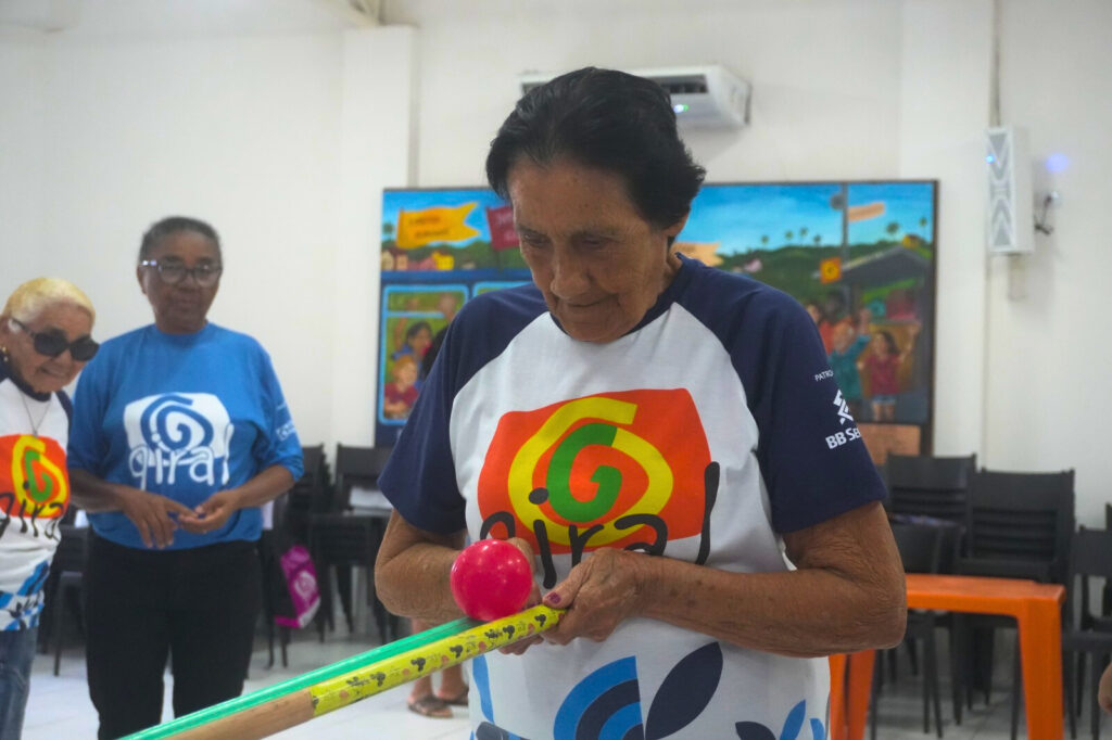 A rotina dos participantes do projeto Sonhos Não Envelhecem tem sido transformada através de práticas esportivas. Para além dos exercícios físicos, a atividade se consolidou como um espaço de socialização, cuidado e resgate da autonomia. Segundo o Ministério da Saúde, a importância da atividade física na terceira idade é vital para o fortalecimento muscular e a redução da sarcopenia — a perda de massa muscular comum no envelhecimento. Ao promover mais energia, disposição e independência, o exercício físico contribui diretamente para a prevenção e controle de doenças crônicas como hipertensão e diabetes, além de ser um pilar na redução do risco de quedas. Para o educador físico Josué Rocha, as vantagens vão muito além do físico. “Os benefícios vão desde o condicionamento físico, equilíbrio, coordenação motora e fortalecimento muscular, como também o benefício para a saúde mental delas,” explica. O educador aponta a socialização entre as participantes e a liberação de hormônios que proporcionam “sensação de bem-estar e de felicidade” como essenciais para a saúde mental. Cuidado e AdaptaçãoCiente dos cuidados necessários na terceira idade — como evitar movimentos bruscos e monitorar questões como pressão arterial e frequência cardíaca —, a oficina é conduzida com atenção rigorosa. “Sempre que elas chegam, principalmente quem já tem um histórico de hipertensão ou diabetes, a gente busca verificar a pressão arterial e a glicemia,” relata Josué. O educador explica que a chave é a adaptação e o equilíbrio: “Geralmente, para cada exercício, eu deixo sempre ali de reserva uma ou duas adaptações. Em um nível mais difícil, mais médio e mais fácil, porque a gente tem aqui idosas que estão nesses diferentes níveis.” Essa personalização garante que tanto quem possui melhor condicionamento quanto quem tem limitações se sintam incluídos e estimulados. Resultados ConcretosO impacto prático da atividade é vivenciado por beneficiárias como Selma Gonçalves. “Senti muita diferença, viu? Muita mesmo,” relata aliviada. “Eu sentia uma dor nessa perna e eu vinha pra aqui me arrastando. Agora eu não sinto mais, graças a Deus.” Para Selma, a oficina se tornou indispensável. “Eu me sinto muito bem. Estou feliz. Eu sinto até falta quando eu não venho!” Ela afirma que o projeto da Giral é um refúgio: “É muito importante mesmo. Porque se não fosse isso, esse Giral aqui, muita gente sofria. Porque isso aqui é um divertimento. A gente está aqui, a gente esquece de tudo lá fora.” Focado em pessoas idosas em situação de vulnerabilidade, o projeto Sonhos Não Envelhecem promove saúde física e mental por meio de oficinas, rodas terapêuticas e atividades de lazer e aprendizagem. Incentivando o envelhecimento ativo e o fortalecimento de vínculos afetivos e comunitários, valorizando o protagonismo, a convivência e os sonhos em todas as fases da vida. Com o equilíbrio entre diversão e saúde, a Giral reafirma que o envelhecimento é um tempo de fortalecimento e de novos começos, onde o cuidado com o corpo se traduz em mais autonomia para viver e sonhar. O Projeto Sonhos Não Envelhecem é uma iniciativa da Giral, com patrocínio da SulAmérica, Instituto Ultra, Alura e Cia Muller.